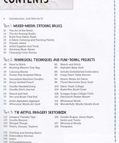 Follow step-by-step instructions and photos demonstrating a dozen inspiring techniques, including collage, stenciling, free-motion stitching, fused applique lettering, needle felting, doodle machine and hand embroidery, and more! Then, transform your custom fabric into playful pillows and bags, art quilts, journals, and other fun and funk-tional projects. Joanne’s whimsical artwork and a “sketchbook” of designs you can adapt for your own work round out this colorful, inspirational guide.