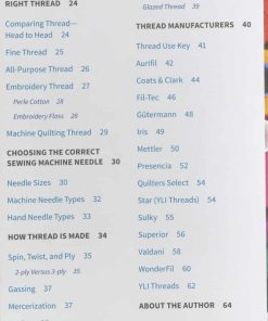 Always choose the right thread! This amazing reference guide features a handy thread use key (organised by thread manufacturer) that shows the most common uses for the wide variety of threads commonly used by quilters and sewists. This valuable information will help you determine which one is right for your project. Plus, get the inside scoop on thread types and fibres, thread weight, choosing the correct sewing machine needle, and how thread is made.