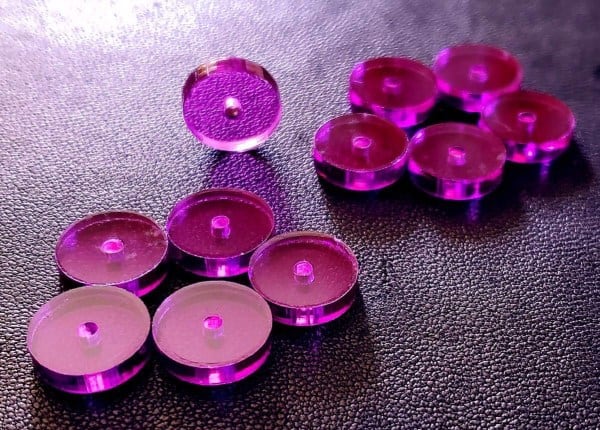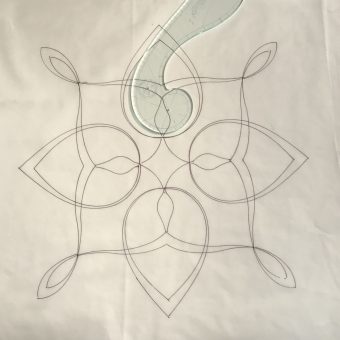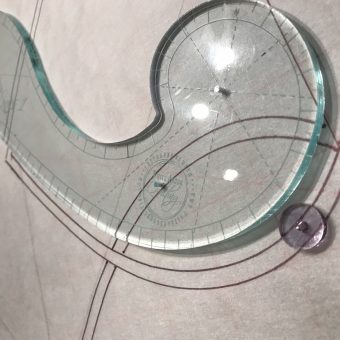 Lily Lines 1 features three graceful French curves, fine measurement gradations along all edges, a laser etched 1/4″ echo line and four pinhole alignment lines. You are limited only by your imagination in creating beautiful curving frames, radiating curving foundation quilting, or perfect rulered spines for feathers. Made of 1/4″ thick, compressed light emitting acrylic. It is a translucent pale, pale green that reads as clear from above, but glows a beautiful aquamarine from the edges if viewed at an angle. Measuring 10.5″ x 3″, they are just the right size, ideal for making easy, graceful frames, especially behind appliqué. All edges feature finely inscribed registration lines for precision placement time and time again. Simply match a ruler line with a registration point directly on the quilt for easy, repeating perfect curving lines. A BONUS drawing wheel will be included with this ruler for Australia/NZ customers.