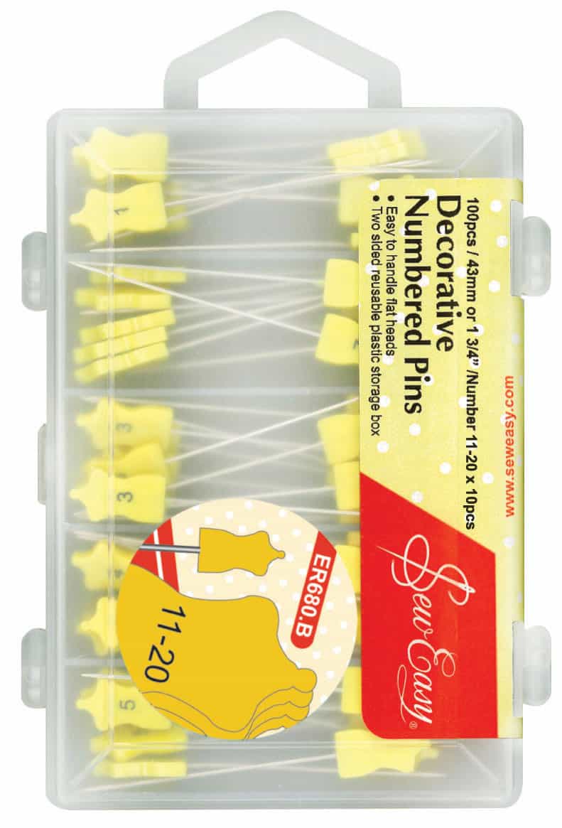 Numbered Pins is the perfect solution for organizing quilt blocks, rows and columns when order is important to the design of the quilt. Use these high quality, stainless steel, flat head pins as a simple tool to keep your project organized without disturbing your layout.