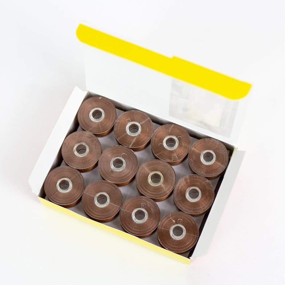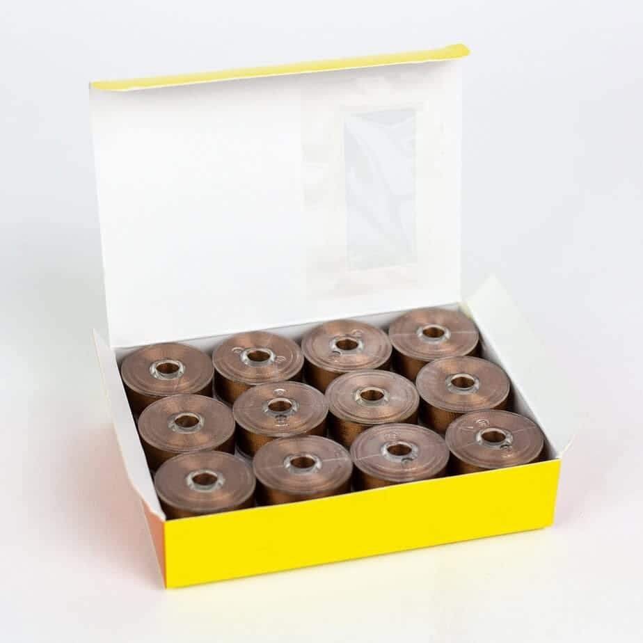 Decobob Prewound Bobbins – Dark Copper is a fantastic choice because they come wound uniformly meaning you will get more consistency in all your stitches, which is especially noticeable when doing embroidery. They also come wound with a higher density of thread than when you wind your own bobbins on a domestic machine.