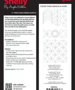 Shelly is your go-to ruler for adding beautiful, consistent curves and motifs, making it perfect for both high-shank home sewing machines and most longarm quilting machines.