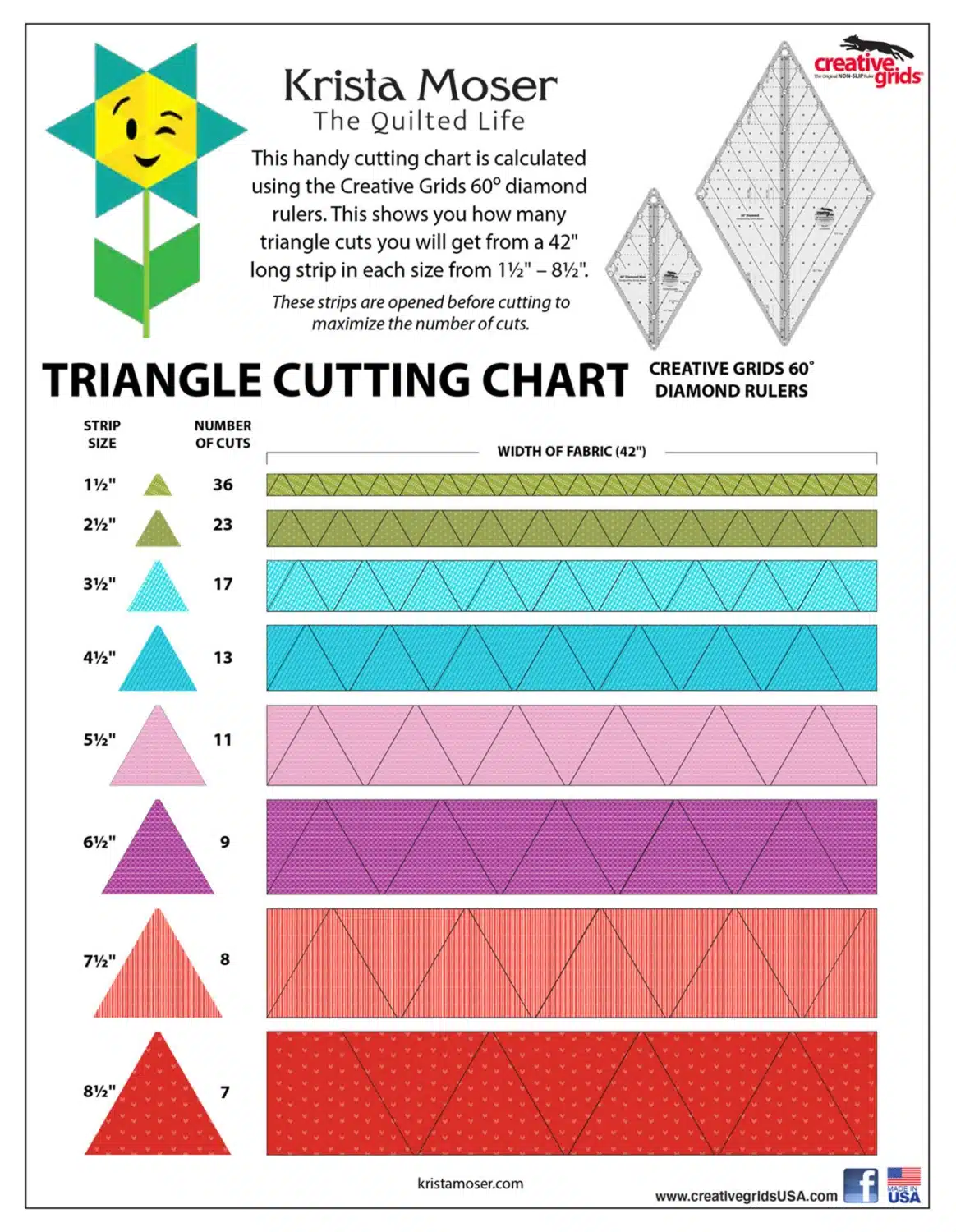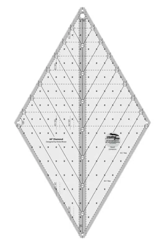 Elevate your patchwork and create stunning geometric designs with the Creative Grids 60 Degree Diamond Quilt Ruler, expertly designed by Krista Moser!