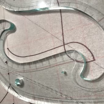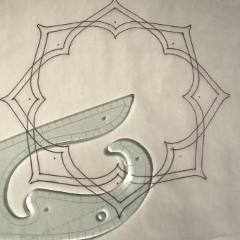 Lily Lines 2 features four graceful French curves, fine measurement gradations along all edges, a laser etched 1/4″ echo line and four pinhole alignment lines. You are limited only by your imagination in creating beautiful curving frames, radiating curving foundation quilting, or perfect rulered spines for feathers. Made of 1/4″ thick, compressed light emitting acrylic. It is a translucent pale, pale green that reads as clear from above, but glows a beautiful aquamarine from the edges if viewed at an angle. Measuring 10.5″ x 4″, it is just the right size, ideal for making easy, graceful frames, especially behind appliqué. All edges feature finely inscribed registration lines for precision placement time and time again. Simply match a ruler line with a registration point directly on the quilt for easy, repeating perfect curving lines. A BONUS drawing wheel will be included for Australian/NZ customers with this ruler.